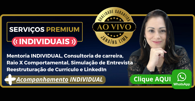 Janaína Lima | Mentora de Carreira | Especialista em recolocação profissional | Empregabilidade | Currículo | LinkedIn | Entrevista de Emprego | Desenvolvimento Pessoal e Profissional